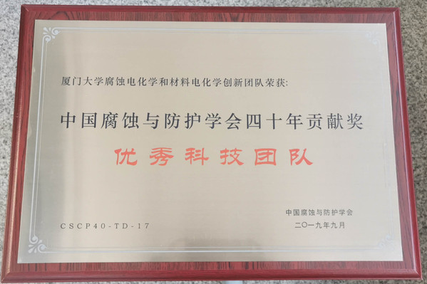 23. 荣获2019年中国腐蚀与防护学会40年贡献奖“优秀科技团队”(创新团队负责人);
