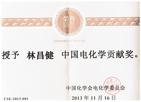 10. 荣获2013年中国电化学杰出贡献奖,中国电化学学会;(个人)