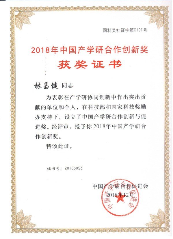 19. 电化学技术创新及工程应用,获2018年中国产学研合作促进会中国产学研合作创新奖;(个人)
