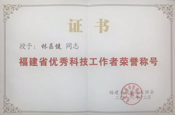 20. 荣获2018年福建省优秀科技工作者, 福建省科协;(个人)